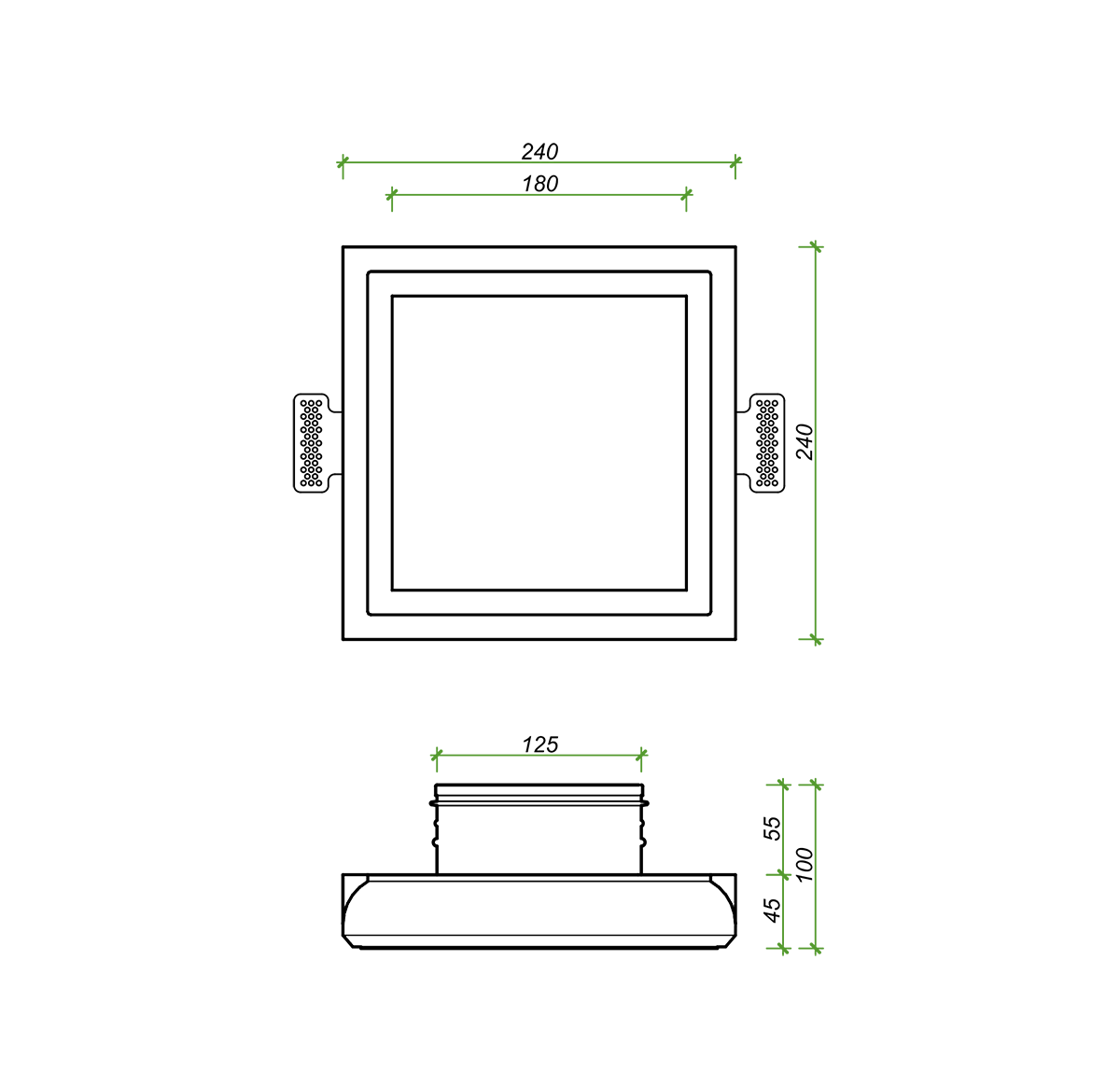 Габаритный размер (мм) - 280 х 280 х h100